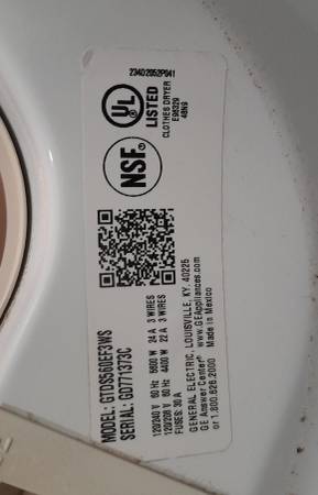 used electric dryer. dries well. ( clunk when starting, but dries clothes very well )