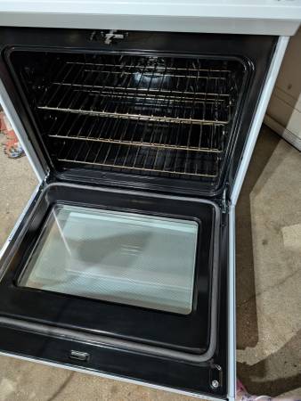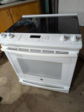 Very gently used electric convection oven with glass stovetop. Clean interior and exterior. Heats up well, and all the burners work. It has an old style plug, so you'll need an adapter or a new cord for it, but otherwise it's a fantastic oven.
