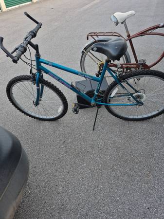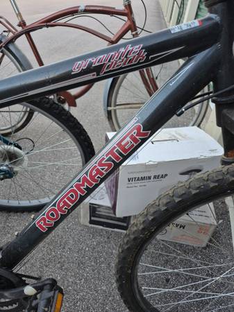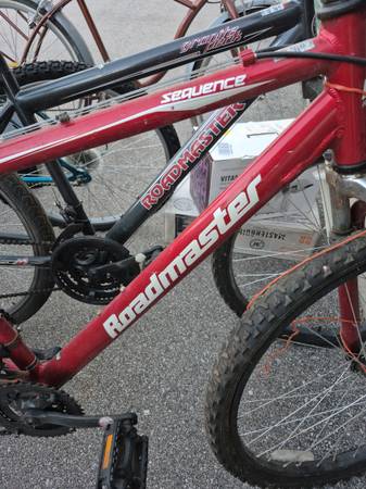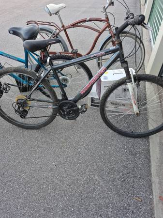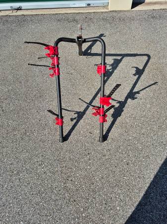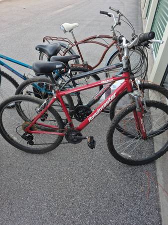 4 26" bikes and reciever carrier, fits both 1" 1/4 and 2" recievers. Mens 5 speed schwinn cruiser.18 speed womens mountain bike. Mens Comfort bike (the red 1).and a 18 speed men's mountain bike (white and black 1 ) had rear sprockets replaced at break away bikes .dirty but all work need minor adjustments been in storage for a while.tubes are good also has extra tubes in box .