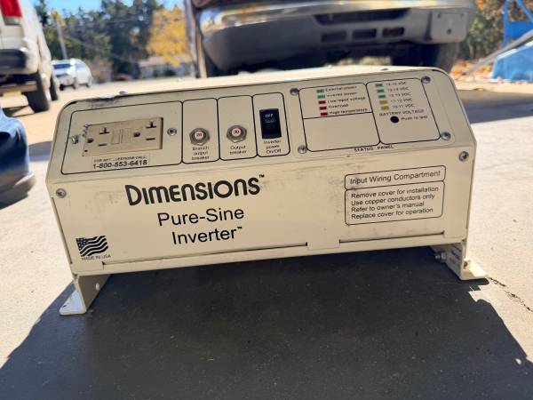12v D.C. input, 1800 watt A.C. output Dimensions pure sine power inverter. Cables that hook up to the battery come with the unit. Make offer must sell If you are interested please text or call me at...
