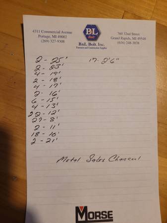 I ordered the wrong color for a job. My loss is your gain. This is brand new Metal Sales steel from Carter Lumber in charcoal Grey. Retai price is $4000.00. See pics for the list of lenghts. $2500...