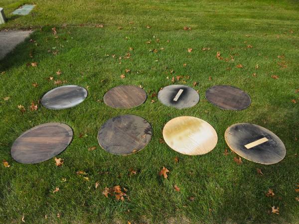 24" diameter x approximately 1" round wood boards. 8 total. 1 slightly damaged. P/U North Muskegon Meijer gas station. Two-three-1 6-3-8-two-nine-6-6. $25.