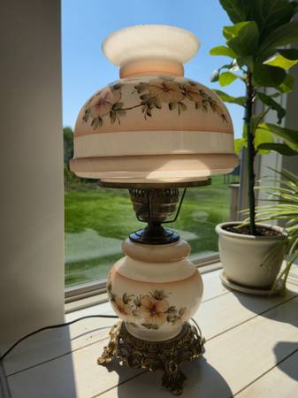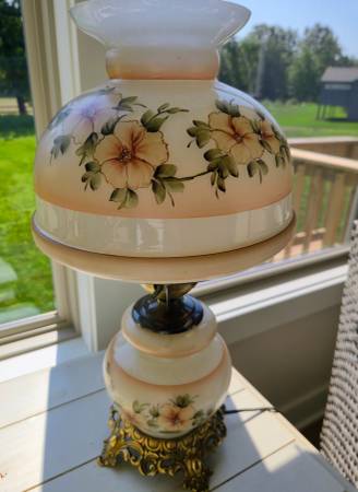 Antique Glass Parlor Hurricane Lamp Hand Painted Floral Pattern 19" Tall Cash only