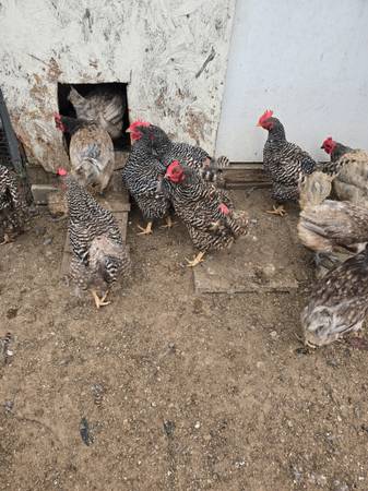 Chickens 8 Barred Rock 3 yr. old $5 ea. 10 Sapphire Gem 1 yr. old $20 ea. Located in Hart.