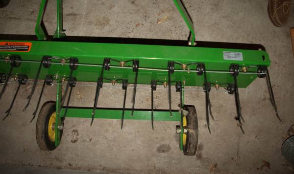 Ariens tractor 17.5 hp, 5 yrs old $500 MULCHES LEAVES, ETC John Deer detacherator $175 Agrifab core aerator $225