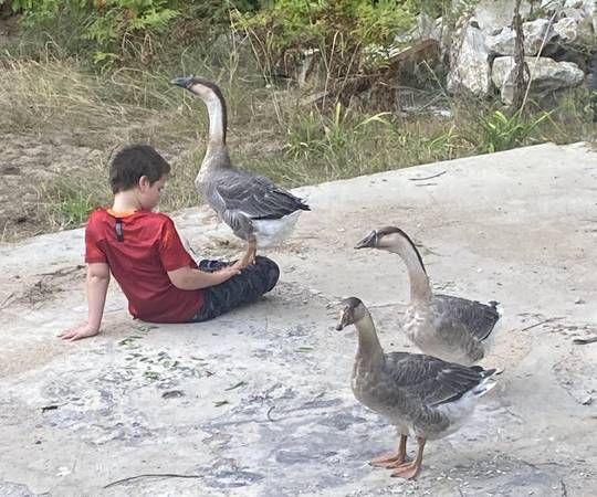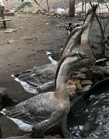 We’re rehoming our small trio of African geese — one male and two females, all hatched this spring (2025). They are healthy adults and have done a great job protecting our flock and alerting us to anything unusual around the yard.
