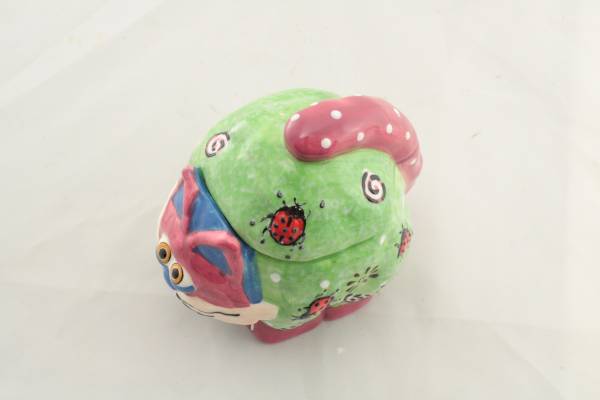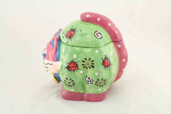 Another outstanding statue product from CBK. Includes a trinket holder dish area with removable lid. Paintwork features ladybugs. Fine craftsmanship in a summer green color.