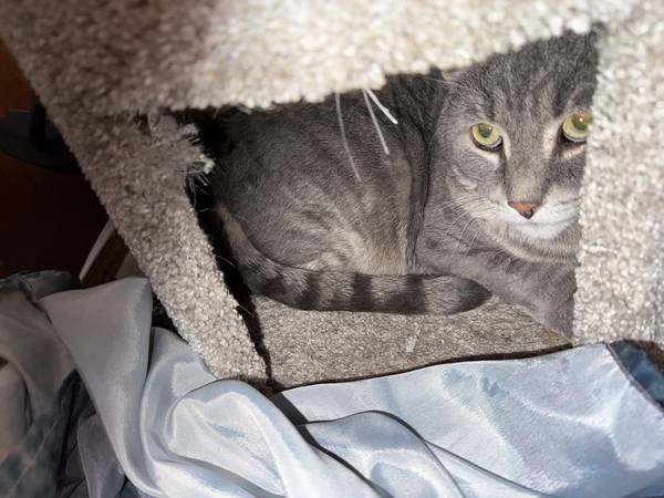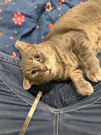 Lost Grey cat with black stripes tan belly lost 11/23/2025 lakeside nims neighborhood he has health issues so any help is greatly appreciated