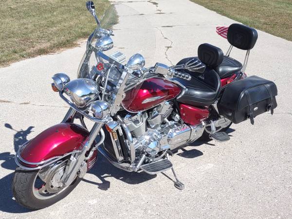 Another year that it was inside all summer. 03 Honda VTX 1800R. Many extras, Commander chip, Ultimate X seats, removable windshield and saddle bags, Muzzy exhaust, footboards. Lots of chome. I have stock seat, pipes and jack. 28k miles on it, hardly any in the last couple years. I really don't want to store it again because we probably won't ride it next year either. Text is best two31 20six six240