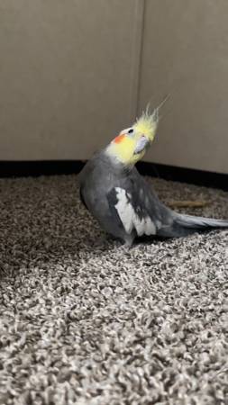 I have a 5yr old male cockatiel, he comes with cage, brand new food. He is ready for his new home. My cats are stressing him a bit. He was given to me, he loves when you sing and talk to him. He needs a quiet home maybe with friends! I’m asking 100 for a rehoming fee.
