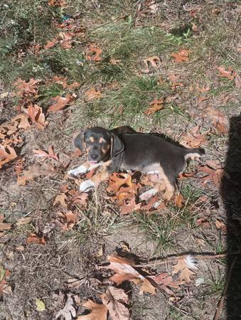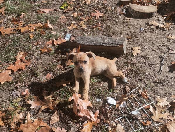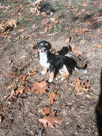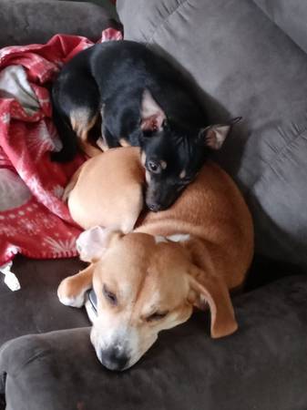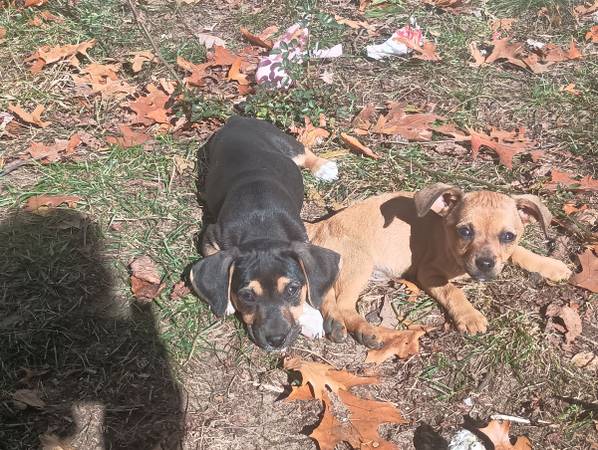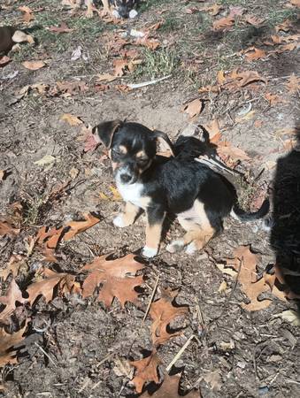 Chihuahua (dad)(9 pounds) mountain Feist beagle mix (mom)(30 pounds) $100 rehoming fee black one with a nub tail is male other 2 are female