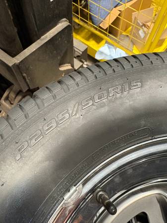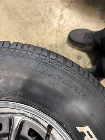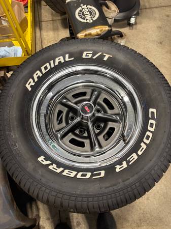 This is a set of 4 wheels & tire with 2 235/70 R15 tires and 2 295/ R15 tires. Tires are in like new condition and wheels are in excellent condition. (Cooper Cobra G/T tires) Wheels are from early 70"s Oldsmobile. Wheels have all center caps and trim rings.