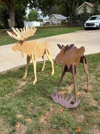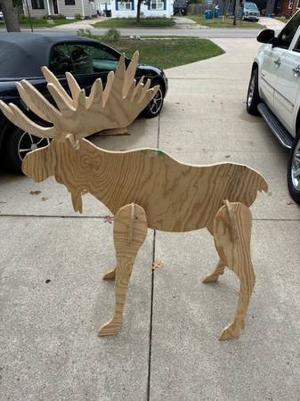 For sale is one 1/2" thick painted moose. $30-now free. Wind blew it over and broke a leg. Leg can be repaired.