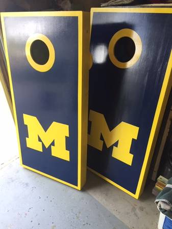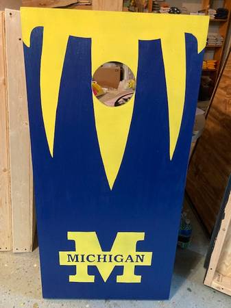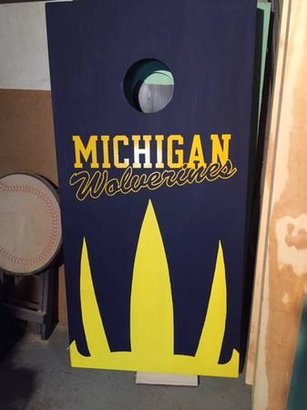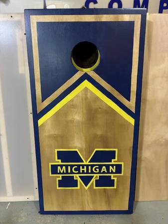 University of Michigan cooler, cornhole game, beverage holder - $160 (SPRING LAKE)