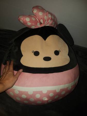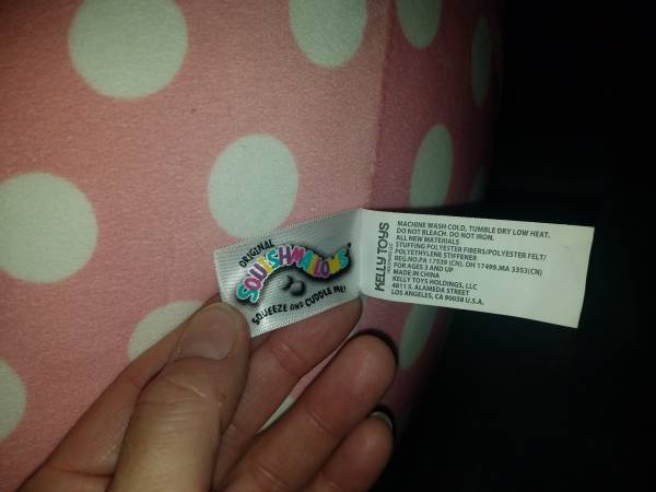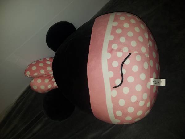 My daughter received this as a present and hardly ever used it and it has been in storage since. It is in perfect shape, no rips or stains and we have a smoke free home. Our cat is not allowed on her bed so it should not have cat hair either. She is raising money for crafting supplies. It measures 24 inches by 24 inches when flat-ish to measure. Such a cute pillow and so comfy.