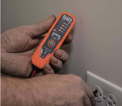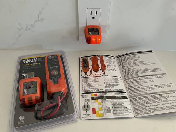 Here is a Brand New KLEIN Digital AC/DC Voltage and GFCI Receptacle Test Set ready to go.