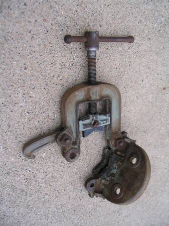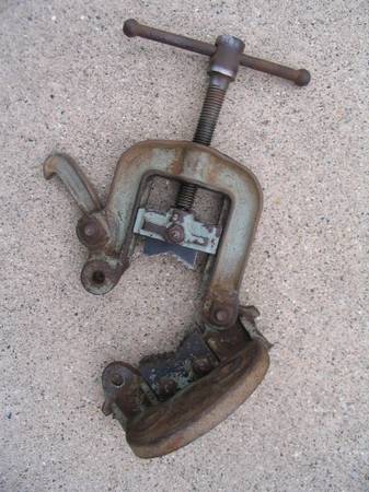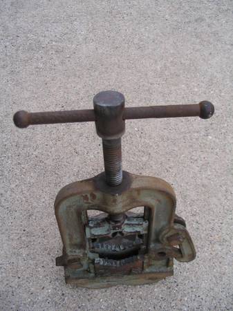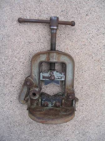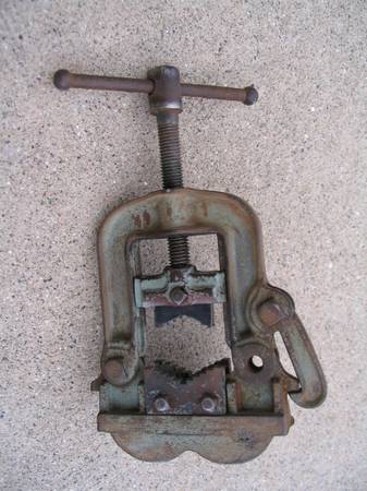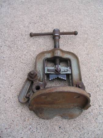 I have a small bench mount Pipe Vise in very nice condition, not shinney and new looking but nothing is broken and it works fine. Mount on your work bench, or any other place of your choosing. I could not find a manufactures name on it any place, but it appears to be very old. It will accept pipe up to 1-1/2" or other material up to 2" in total diameter. If it's still listed, I still have it. $15 Cash