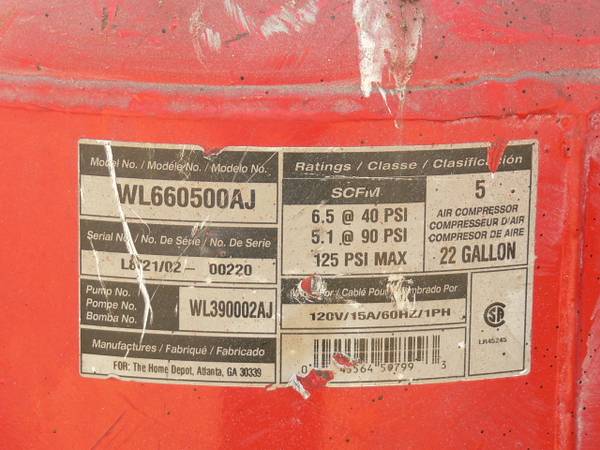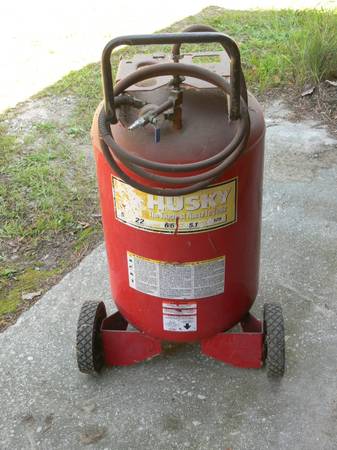 For Sale is a portable compressed air tank, 22 gallon, purchased from a tool rental company. It could hold an air compressor on the top. There is a pressure gauge.